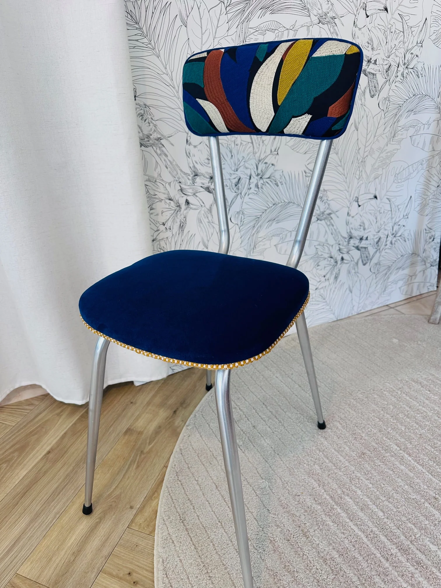 J’ai pensé cet atelier pour vous, une méthode simple pour vous expliquer les bases de la tapisserie moderne en mousse afin que vous puissiez réaliser une chaise vintage selon votre style puis repartir avec votre création et la technique pour en relooker d’autre chez vous.